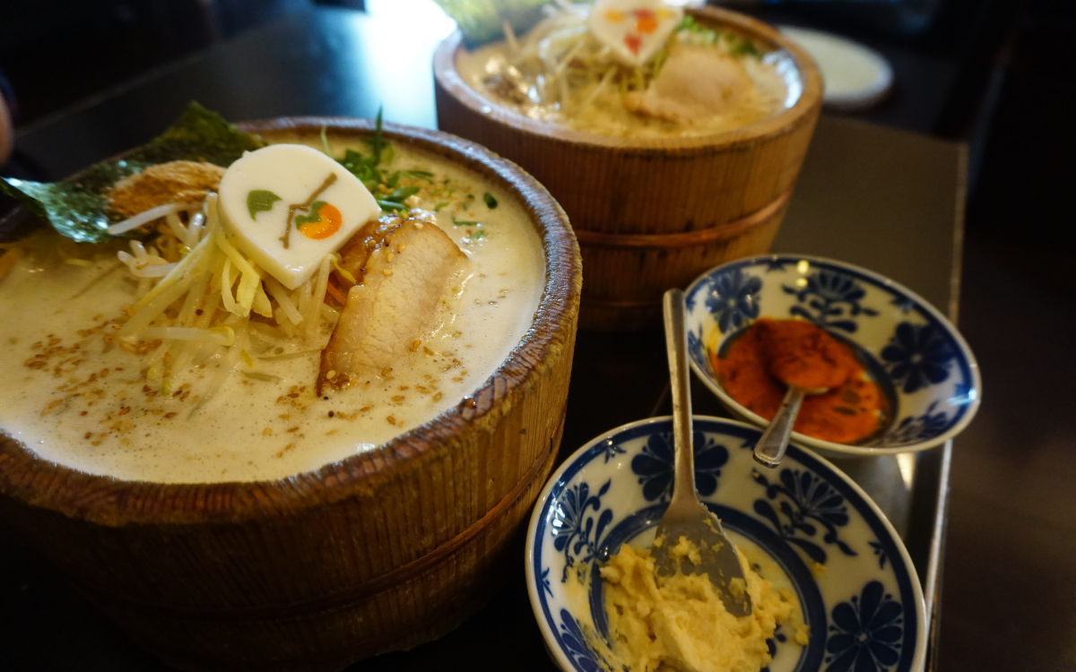 「小田原かまぼこ通り」の入口、大正時代に建てられた古民家で出される木桶のラーメンは、鯵で出汁をとった深みのあるラーメンです。
