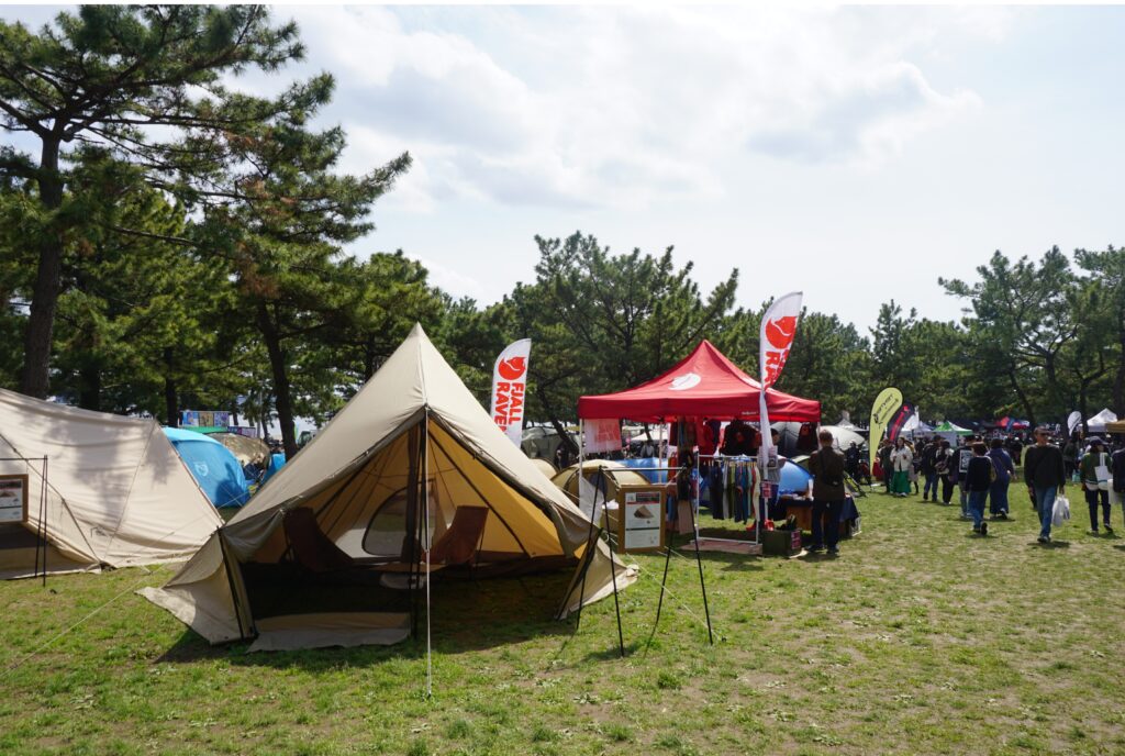 海と緑を感じられる開放的な“海の公園”緑のオープンスペースで開催される、アウトドアイベント「GOOD OPEN AIRS」。今回は初日である2025年4月5日(土)の午後に行った時の様子を紹介させてもらいます。