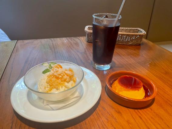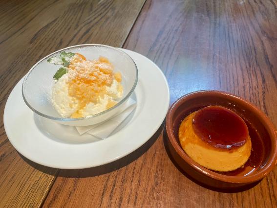 デザートにオーダーしたのは「横須賀ブランド姫様たまごのカスタードプリン」。同行した方の一人は「クレームダンジュ(フレッシュチーズのムース)メロンのラム酒マリネ添え」を。