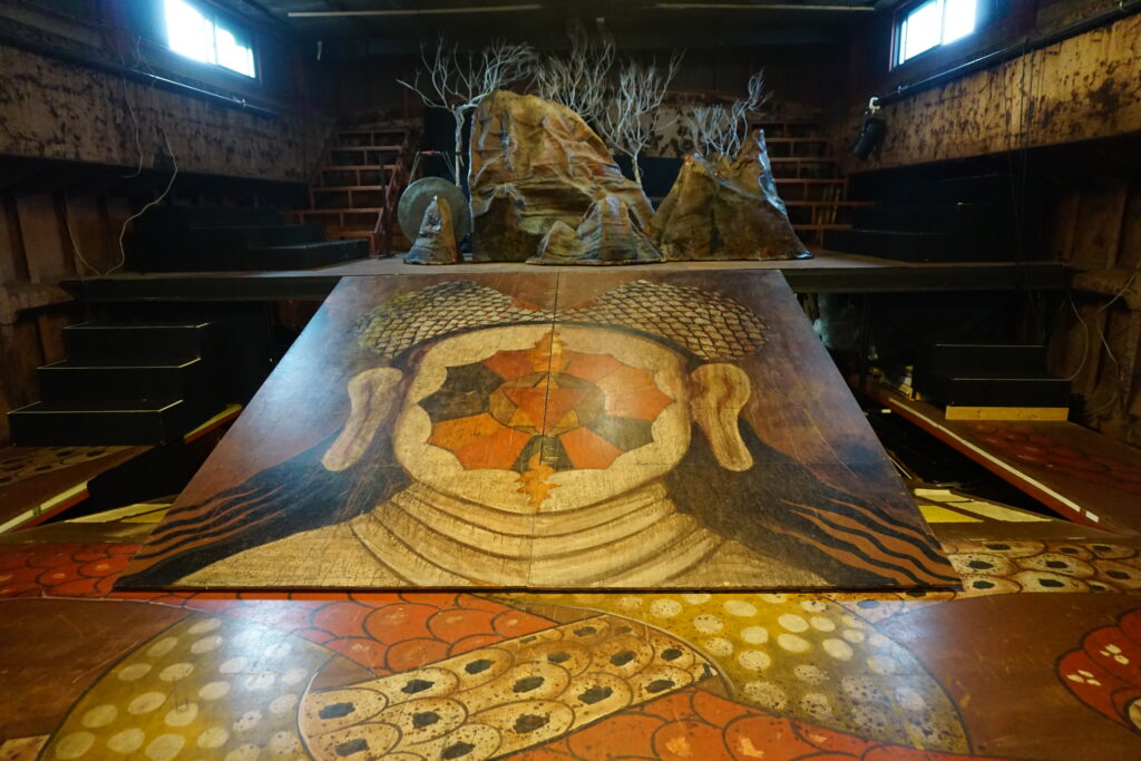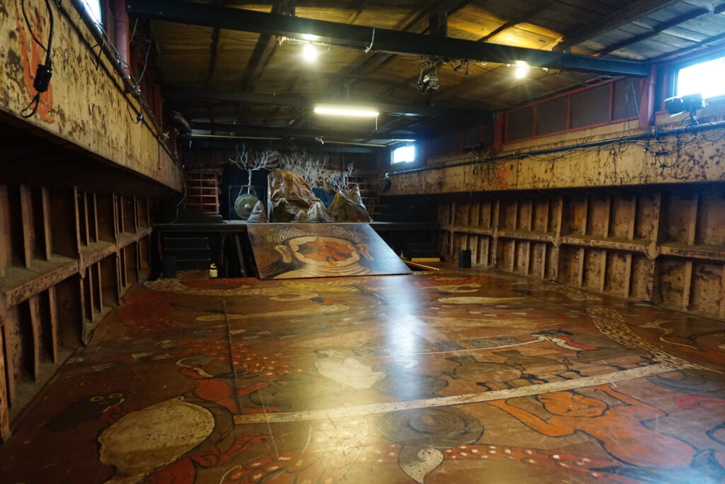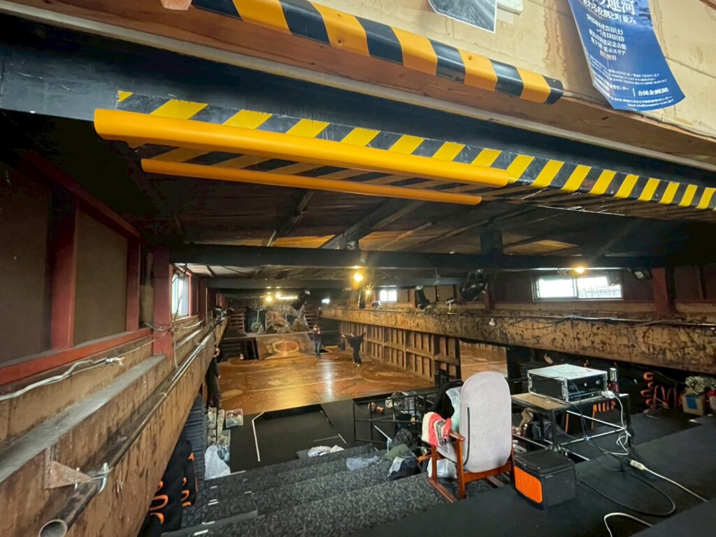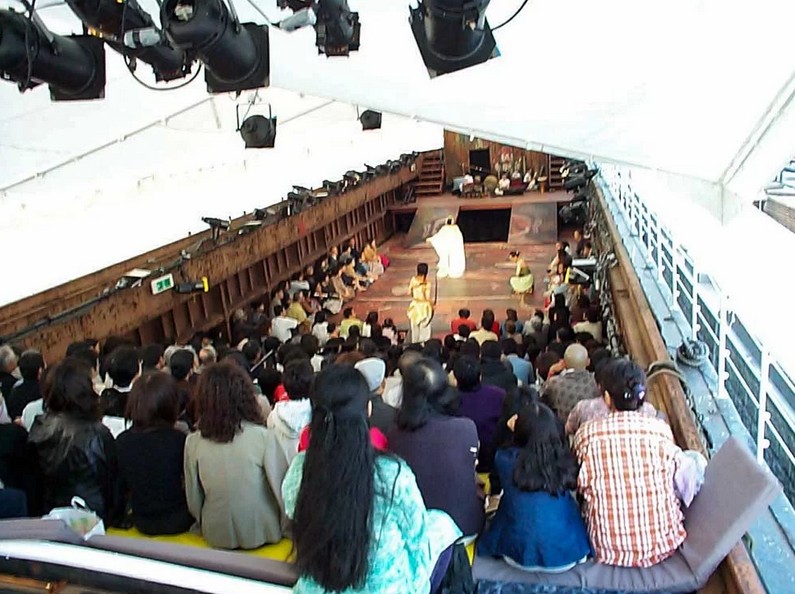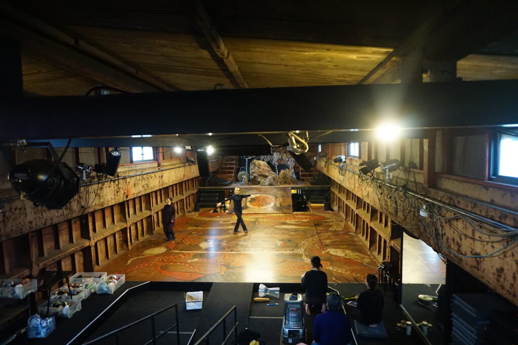 明かりはあるものの、窓からの自然光は床まで届かない。淡い光に包まれた船劇場の中で、そんな感想を抱きました。