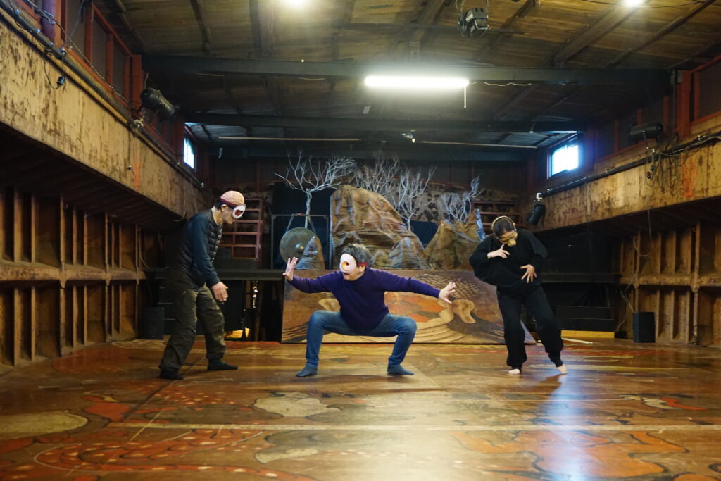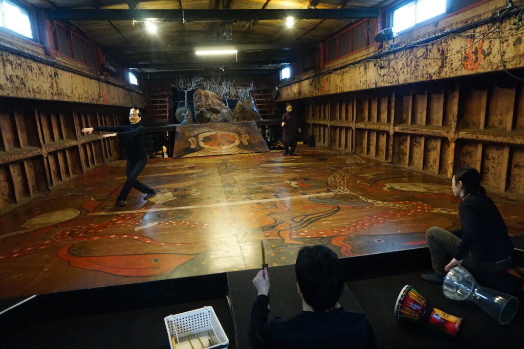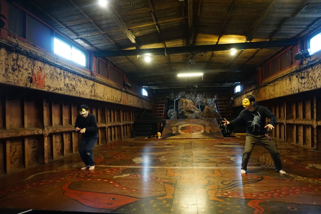 船劇場では、港という場所が刻んできた時間そのものを舞台に、独自の創作となるワークショップ・公演・イベントが開催。今回は一般の人も参加できる、短編仮面劇の創作ワークショップを見学させてもらいました。